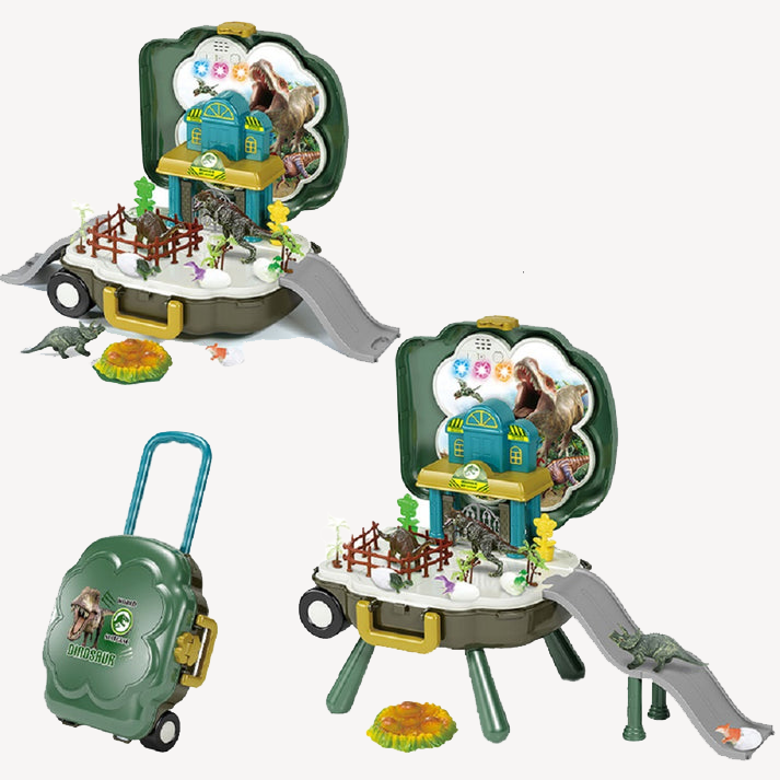 [SG] Mr Bonch 3 In 1 Dino Playset with slide Suitcase | Includes Dino Figurines and Batteries