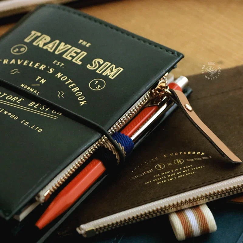 Keep your stationery and travel essentials organized with the Travel Notebook Storage Bag. Made from durable washed kraft paper, this bag is designed to withstand daily use and is both functional and stylish. Whether you're on the go or at home, this bag features a secure zipper closure and a designated pen bag, perfect for storing notebooks, pens, loose-leaf paper, and stickers. It’s available in Passport and Standard sizes, making it ideal for all your organizational needs.